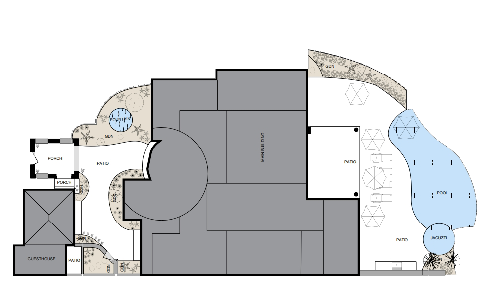✓ Pools, terraces, and outdoor living areas